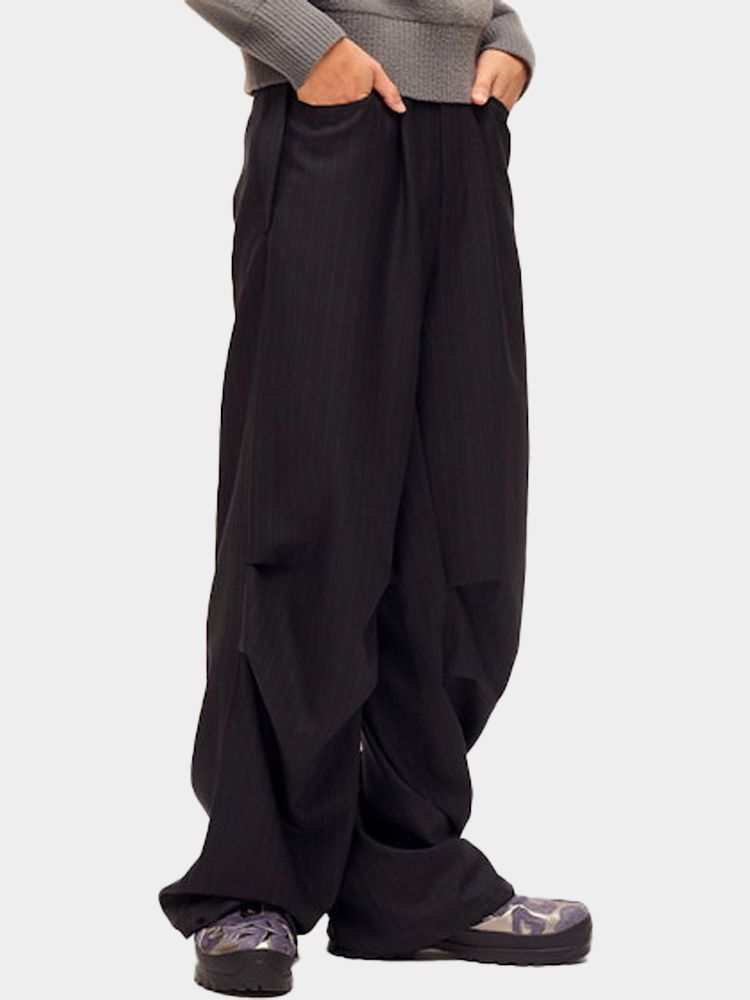 핀스트라이프 울 소재의 파라슈트 우븐 팬츠